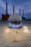 een glazen bol bij het strandgedeelte van het Autostadt Wolfsburg.