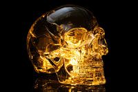 Deze unieke glazen schedel straalt een mystieke, moderne sfeer uit. Het ontwerp is een perfecte mix van elegantie en intrige, waarbij de transparante glasstructuur gevuld is met een warme gouden gloed. Dit kunstwerk is ideaal als eyecatcher in een moderne woonkamer, kantoor of stijlvolle slaapkamer en voegt een vleugje futuristische stijl toe aan elke ruimte. Of je nu een liefhebber bent van abstracte kunst of een unieke toevoeging zoekt voor je interieur, deze glazen schedel trekt onmiddellijk de aandacht en creëert een betoverende ambiance. De heldere reflecties en warme tonen zorgen voor een indrukwekkende visuele impact die elke ruimte transformeert.