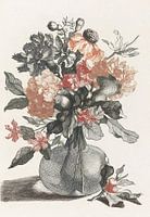 Glazen vaas met bloemen en voor de vaas een tak met bloem, anoniem, naar Jean Baptiste Monnoyer, 1688 - 1698