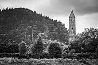 De ronde toren in Glendalough in County Wicklow, Ierland, bekend om een vroegmiddeleeuwse kloosternederzetting gesticht in de 6e eeuw door St. Kevin.