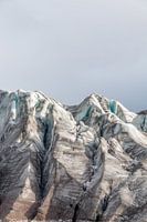 Gletsjerijs IJsland met de blauwe kleur van het ijs en het zwart van het vulkanische as.