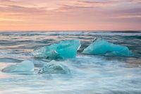 Vanuit de lagune van de Jökulsárlón gletsjer blijven stukken gletsjer naar zee drijven.