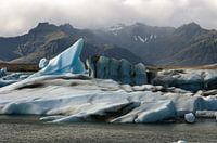 Het gletsjermeer Jokulsarlon in het zuiden van IJsland ligt vol met drijvende ijsschotsen van de grootste gletsjer van Europa, de Vatnajokull. Sommigen zijn groter dan flatgebouwen, het gedeelte dat je ziet is slechts een klein deel van de ijsschots.