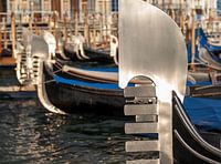 Het glimmend boegstuk van de gondel heeft allerlei betekenissen. Hij representeert de zes wijken van Venetië met de zes strippen aan de voorzijde, de hoed of muts van de Doge, met de grote kromming aan de bovenzijde, het Grande Canal, met de lange bocht aan de onderzijde, en de zevende wijk (de strip aan de achterzijde), en meer.