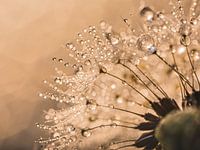 "Glinsterend in het licht: De paardenbloem" is een macrofoto van een aantal pluisjes op een paardenbloem met waterdruppeltjes.
