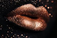Over ‘Glinsterende bronzen lippen close-up’ van Art & Soul Creations