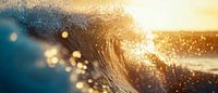 Een betoverend natuurspektakel ontvouwt zich in deze levendige zeescène, waar gouden lichtstralen de glinsterende golven ontmoeten. De dynamische beweging en sprankelende spatten brengen een gevoel van vrijheid en vernieuwing over. Ideaal voor in de woonkamer, brengt het een rustgevende vakantieflair in elke kamer.