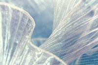 Dit werk toont een abstracte close-up van een delicate, doorschijnende stof met een glinsterend oppervlak. De zachte plooien en fijne plooien creëren een luchtig, bijna gewichtloos visueel effect. De inspiratie voor deze foto was het samenspel van licht, beweging en materiaal - een moment waarop textielstructuur een atmosferische compositie wordt.