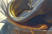 Dit werk toont een abstracte close-up van een glanzende metallic stof in goud- en zilvertinten. De plooien en lichtreflecties creëren een dynamisch maar rustig visueel effect. De inspiratie voor dit beeld was de observatie van het lichtspel op gestructureerde oppervlakken - een moment dat door fotografische verkleining werd omgezet in een visuele meditatie over materialiteit en licht.