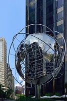 Na een heerlijke wandeling in Central Park zagen we deze wereldbol sculptuur op Columbus Circle in New York, USA. Indrukwekkend kunstwerk.