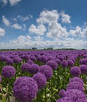 bollenveld, paars, wolken, wolkenlucht, bloembol, ui, allium, bloem, bloemen, voorjaar,