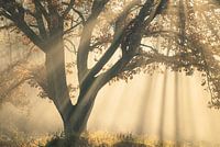 Toen ik in de herfst een workshop gaf, zag deze boom er fotografisch gezien niet zo interessant uit, maar ik zag mistflarden boven de heide hangen en zei tegen mijn klant dat hij moest wachten, want het zou waarschijnlijk heel mooi worden als de zon en de mist elkaar zouden ontmoeten en plotseling kwam deze scène inderdaad op…