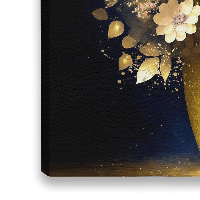 Koop dit bloemen kunstwerk Gloedvol Stilleven. Gouden vaas met bloemen en gipskruid van Studio Pieternel op canvas, aluminium dibond, (ingelijste) fotoprint, behang en ArtFrame, op maat geprint in Fine-Art kwaliteit.