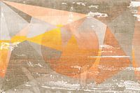 Dit kunstwerk nodigt uit tot een gevoel van geaarde rust. Het bestaat uit gelaagde driehoekige vormen en een verzachte centrale zon en weerspiegelt een rustige balans tussen structuur en sereniteit. Het gebruik van ruwe linnen textuur en subtiele grungelagen geeft het werk een tactiel, verweerd gevoel - een eerbetoon aan imperfectie in de geest van Wabi-Sabi. Het kleurenpalet leunt op de natuur: gedempt oranje, zandbeige en bleke terracotta gaan naadloos over in een zacht geometrisch landschap. Geïnspireerd door de Japanse esthetiek en de Zen-filosofie van stilte, roept dit kunstwerk de warmte op van een vroege zonsopgang of het vervaagde licht van een zonsondergang. Ideaal voor serene interieurs - denk aan natuurlijke materialen, warme neutrale tinten en een Japanse of rustieke stijl - brengt het visuele diepte zonder de ruimte te overweldigen. Een perfecte keuze voor mensen die waarde hechten aan authenticiteit en slow-living schoonheid.