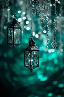 Een fascinerend spel van licht en schaduw ontvouwt zich als filigraan lantaarns zweven op glinsterende, ijzige draden. Het mysterieuze, aquamarijnkleurige achtergrondontwerp brengt een dromerige sfeer in elke kamer. Dit kunstwerk is ideaal voor de slaapkamer en nodigt je uit om in gedachten verzonken te raken en een ontspannende,…