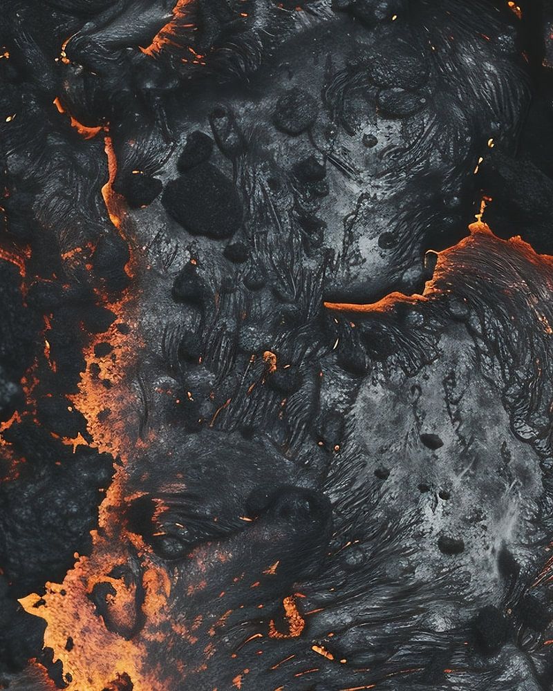 Gloeiende lavastromen van dichtbij