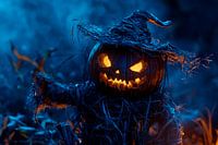 Gloeiende pompoenfiguur in de mist van Poster Art Shop