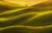 Tuscany landschap. Glooiende heuvels, velden, weiden en een eenzame boom. Crete Senesi, provincie Siena, Italië, Europa