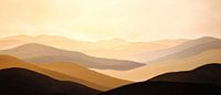 Een zacht kleurverloop van warme goud- en aardetinten brengt de rust en uitgestrektheid van een zacht glooiende heuvel over. De vage contouren nodigen uit tot dromen en creëren een harmonieuze sfeer. Perfect voor de woonkamer, waar ontspanning en gezelligheid harmonieus samengaan.