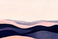 Zachte golven in zachte roze en blauwe tinten vegen over het doek en creëren een gevoel van rust en harmonie. Dit schilderachtige landschap straalt elegantie en sereniteit uit en is perfect voor een slaapkamer, waar het een ontspannen sfeer bevordert en de kamer vult met subtiele schoonheid.