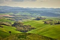 Niets dan groene glooiende heuvels zover het oog reikt, een eenzame boom op de voorgrond groeit onder een vreemde hoek.