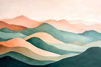 Golvende heuvels in zachte aardetinten trillen harmonieus en roepen een rustgevende sfeer op. De gebogen vormen nodigen uit om te dromen en creëren een gevoel van ruimte en sereniteit. Dit kunstwerk is een ideale toevoeging aan een woon- of slaapkamer en verandert de ruimte in een oase van rust en natuurlijke charme.