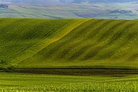 Landschapsfoto van de glooiende groene Toscaanse Heuvels in de lente