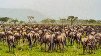 Migratie van een kudde gnoes in de Serengeti nationaal park in Tanzania