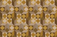 Geïnspireerd door de meesters van Bauhaus, stel ik u met genoegen een prachtig geometrisch schilderij voor in beige, goud, crème en oker op een gouden achtergrond.