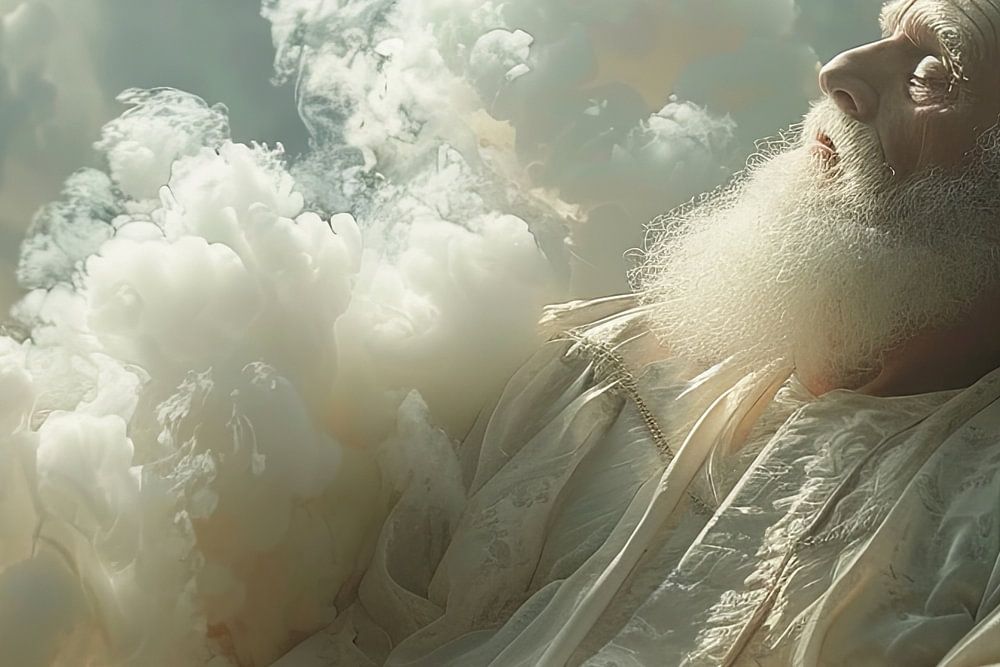 illustratie, ai schilderij van de hemel en God op zijn troon.