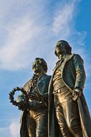 Goethe en Schiller monument voor het Duits Nationaal Theater op de Theaterplatz in Weimar.