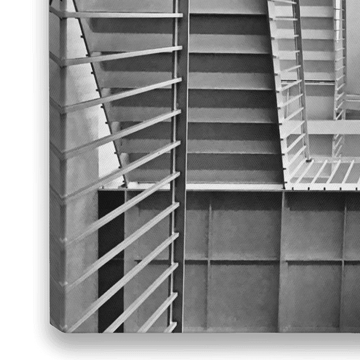 Een bijna Escheriaanse ervaring is dit trappenhuis in Differdange, Luxemburg. In zwart-wit komt het grafische element alsmede een bijna-Droste-effect het best tot zijn recht.