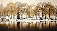 "Gold Forest," a series of captivating artworks, presents an enigmatic exploration of nature's majesty through a lens of gold and shadow. In this particular piece, the black forms reach skyward like ancient trees, their edges kissed with glimmers of gold, creating a forest that resonates with both grandeur and mystery. The interplay between darkness and light, solidity and ethereality, crafts a visual poetry that speaks to the timeless allure of the wilderness. It's a world where nature's simplicity is adorned with a touch of opulence, inviting the viewer into a golden forest that exists somewhere between reality and imagination.