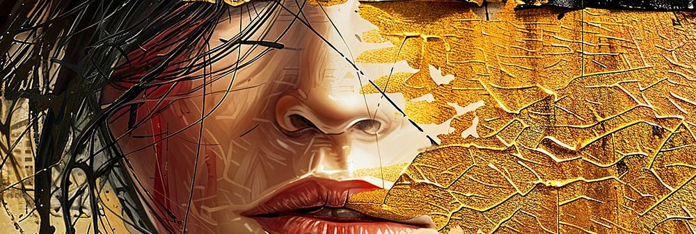Details: vrouw, portret, goud, modern, abstract, gezicht, elegantie, stijlvol, canvas, kunst