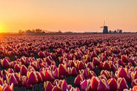 Een prachtige gouden zonsondergang bij de tulpenvelden in Noord-Holland. Een echt Hollands beeld! De oranje/rode tulpen kleurde, net als de lucht, heerlijk mee waardoor deze foto een mooi Oranje geheel is geworden.