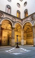 Gefotografeerd op de binnenplaats van het indrukwekkende Palazzo Vecchio in Firenze in Toscane, Italië, op een ochtend vroeg in de ochtend, wanneer u kunt genieten van deze prachtige stad.