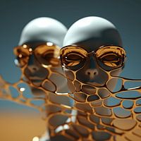In de betoverende rijkdom van deze met AI vervaardigde kunstwerken openbaart zich een magisch schouwspel van menselijke vormen die transformeren tot abstracte gedaantes, verstrengeld met weelderige, organische gouden zwierige vormen. Elk kunstwerk lijkt een verhaal te vertellen dat dieper reikt dan de oppervlakte, waarbij de toeschouwer…