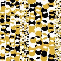Lichtgeel goud, zwarte en witte cirkels met zandsteenstructuur.