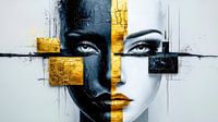 Dit werk is een krachtige visuele metafoor voor dualiteit en evenwicht. De gespleten voorstelling van een gezicht - de ene helft diepzwart, de andere helderwit - symboliseert het eeuwige contrast tussen licht en duisternis, orde en chaos, rationaliteit en emotie. Maar tussen deze tegenstellingen ligt een glanzende gouden lijn die hen tegelijkertijd verbindt en scheidt - een symbool van harmonie, transformatie en verborgen kracht.