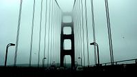 Over de Golden Gate Bridge met de auto in San Francisco, Californië. Mist en bewolking in de ochtend.