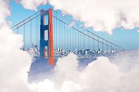 Dubbele belichting Golden Gate Bridge en skyline San Francisco California USA achter wolken