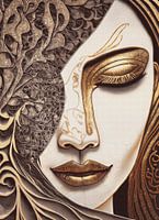 Maak kennis met "Golden Infatuation", een zacht vrouwengezicht waarop gouden accenten schitteren. Ze is diep in gedachten verzonken, verliefd en dromend over haar geliefde. Dit portret belichaamt de kracht van liefde en is een ware schoonheid om te aanschouwen.