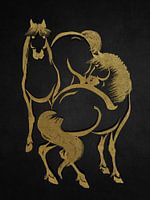 Digitale bewerking van een vintage Japanse illustratie van 2 paarden.