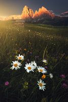 Madeliefjes in het eindeloze gras bij Compatsch, Dolomieten, Italië (2018)
