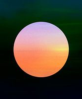 Een abstract maar minimaal schilderij van een paarlemoeren gouden maan in monochrome warme kleuren op natuurlijke bladkleuren.