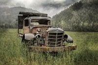 Midden in een weiland staat deze oldtimer, alleen en verlaten. Achter hem zweeft nevel boven het bos, terwijl het beeld fluistert over zijn verleden: wie reed hem, wie vertrouwde hem zijn reizen toe, en hoe is deze tijdloze schoonheid hier terechtgekomen?