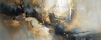 Golden Rift - Dit abstracte schilderij benadrukt een spel van goud, grijs en beige textuur, waarbij vloeiende, organische vormen in een harmonieuze wisselwerking staan met harde breuklijnen.