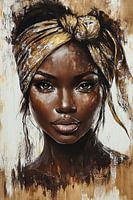 “Golden Sparkle” toont een indrukwekkend en expressief portret van een vrouw, weergegeven in een krachtige, artistieke schilderstijl die luxe, elegantie en innerlijke kracht uitstraalt. Het werk wordt gedomineerd door warme aardetinten die vloeiend samensmelten met rijke goudaccenten, waardoor een harmonie ontstaat tussen zachtheid en…