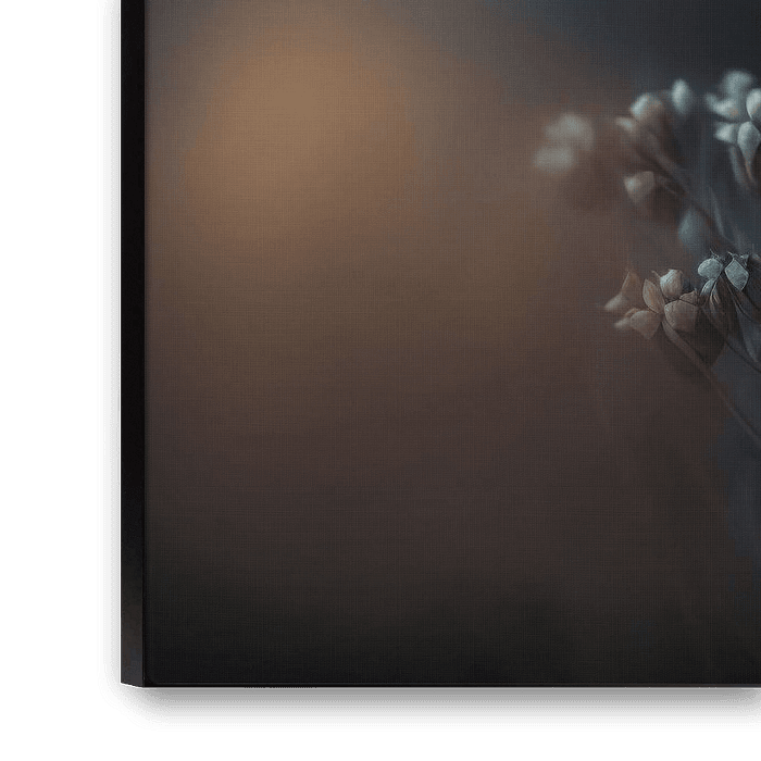 Bloemen in gouden licht, zwevend tussen scherpte en vervaging — pure rust.