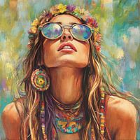 De warme tinten en losse penseeltoetsen vangen het gevoel van vrijheid en vrouwelijkheid in één blik.